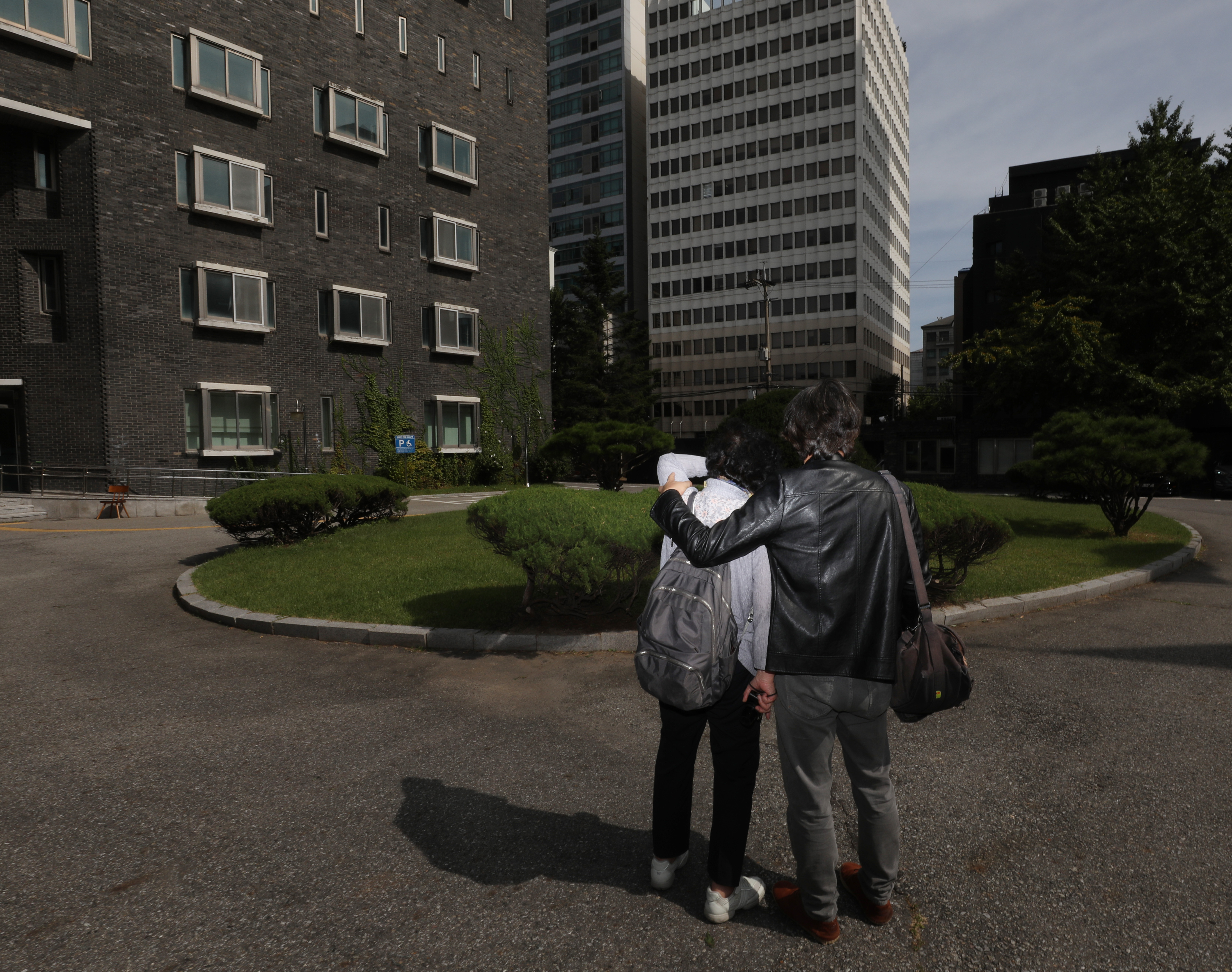 내근 생활 1년을 하고 다시 현장에 ‘복귀’했습니다. 첫날 일정은 서울중앙지법에서 열린 가습기 살균제인 ‘가습기메이트’를 만들고 판매한 기업의 전직 대표들에 대한 1심 선고였습니다. 재판을 앞두고 가습기살균제 피해자와 관련 단체 활동가들이 법원 앞에서 기자회견을 열려고 했고, 법원 관계자들이 청사에서 집회 금지 등의 규정을 근거로 회견을 막으면서 승강이가 벌어졌습니다. 이 과정을 카메라에 담다가 낯익은 얼굴이 보였습니다. 조순미씨. 2019년 가습기살균제 피해자에 대한 사진다큐를 하며 그를 만났습니다. 나를 기억할까, 마스크까지 썼으니 알아보겠나 싶었습니다. 오랜만에 나온 현장의 서먹함에다가 다툼이 벌어진 상황에 인사 할 생각은 못했습니다. ‘기자회견 하면 안 된다’ ‘매번 해오던 거다’ 승강이는 이어졌..