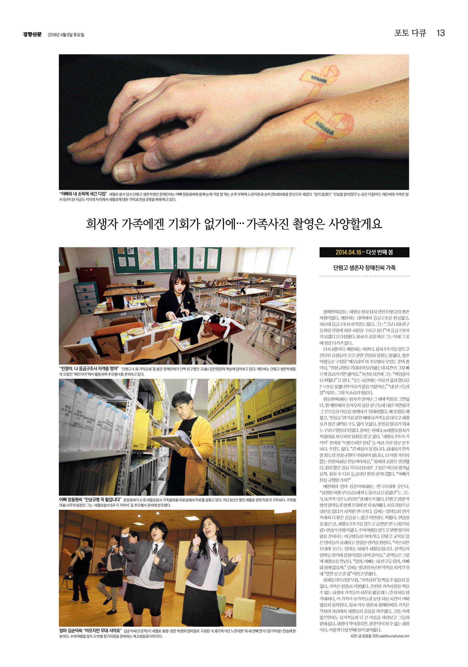 장애진씨(23)는 세월호 참사 당시 안산 단원고의 생존 학생이다. 애진씨는 대학에서 응급구조를 전공했고, ...