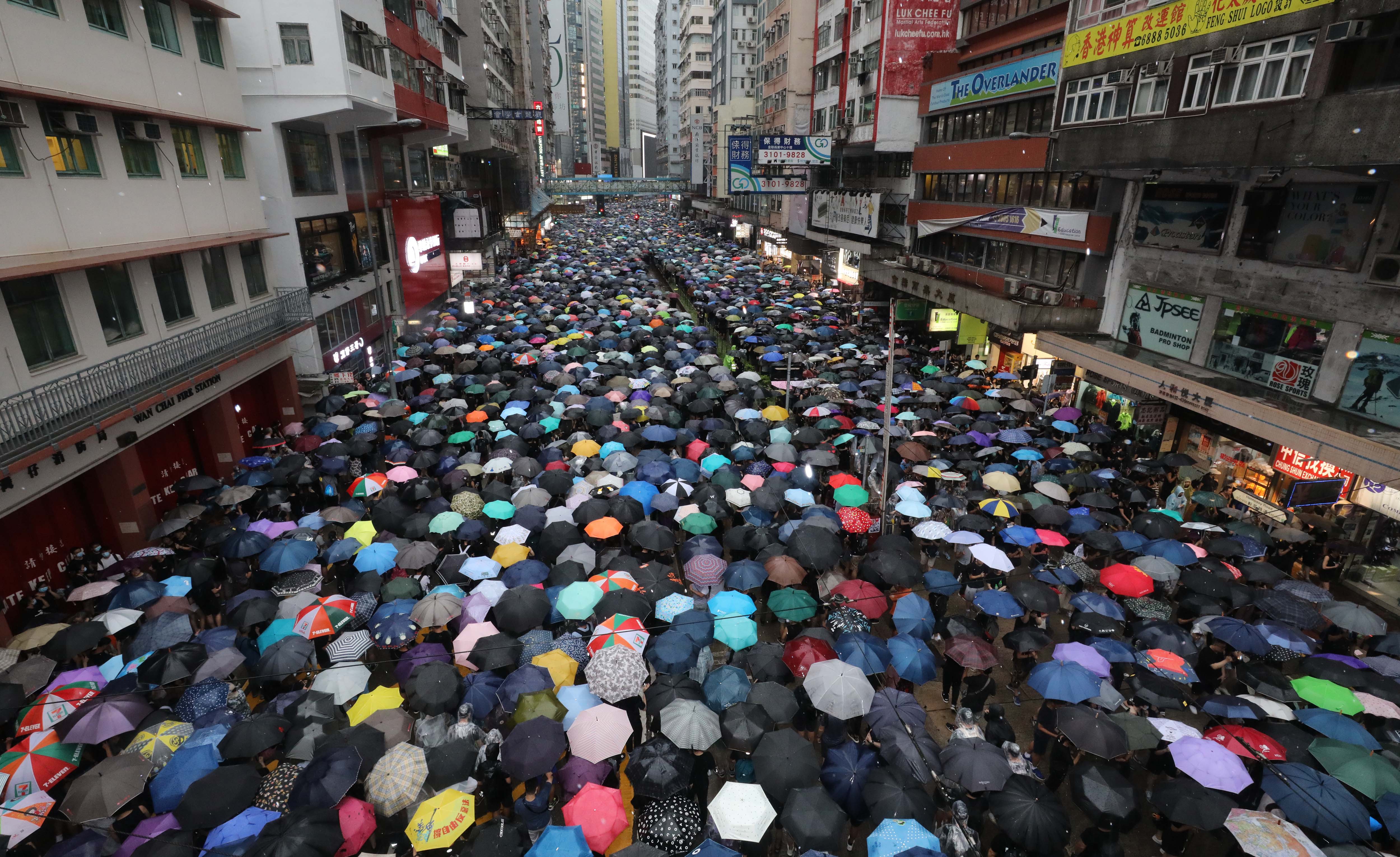 홍콩과 가까운 중국 선전에 장갑차와 무장경찰 등을 배치하며 ‘제2의 천안문 사태’로 번질 수 있다는 우려 속에 열린 집회는 정말 ‘평화롭게’ 끝났습니다. 충돌과 강경진압, 유혈사태로 번지지 않은 것은 천만다행입니다. 아이러니하게도 평화시위였다면 제가 홍콩에 출장을 올 이유는 없었습니다. 행진 동안 저는 꼭 바라는 것처럼 충돌소식을 기다렸습니다. 좀 인정머리 없이 잔인하지요. 출장 왔으니 좀 피곤하고 위험하더라도 거친 상황의 좀 더 센 사진을 은근히 기대했던 겁니다.